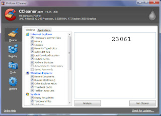 โปรแกรมที่ได้รับความนิยมสูงสุดจากยอดดาวน์โหลดทั่วโลกระดับ 1,000,000 ครั้ง และติดในอันดับหนึ่งของซอฟแวร์ที่มียอดผู้ใช้งานมากที่สุดอีกด้วย. CCleaner เป็น ซอฟแวร์ที่ใช้ในการ ลบไฟล์ขยะต่างๆ ในคอมพ์ของเรา ซึ่งขยะที่ว่าอาจจะเกิดขึ้นจากความตั้งใจหรือไม่ได้ ตั้งใจก็แล้วแต่ ทว่าขยะพวกนี้มันกลับใช้พื้นที่ฮาร์ดดิสก์ของเราไปแบบปล่าวประโยชน์ CCleaner นี่ เองแหละครับมันจะเข้ามาสำรวจว่าไฟล์ใดไม่เคยดึงมาใช้งานเลย หรือไฟล์ใด คือ ไฟล์ขยะ เช่น พวก Recent Documents, Temporary files จากโปรแกรม Browser ต่างๆ หรือ Log files ของระบบที่ไม่ได้เคยดึงมาใช้งานเลย มันก็จะทำการลบทิ้งให้ ซึ่งจากการทดสอบของตัวผมเองพบว่ามันสามารถลบไฟล์ขยะไร้ค่าพวกนี้ออกไปได้นับ พันๆ ไฟล์และเพิ่มพื้นที่ว่างให้กับฮาร์ดดิสก์ของผมเกือบ 400 MB ทีเดียวครับ